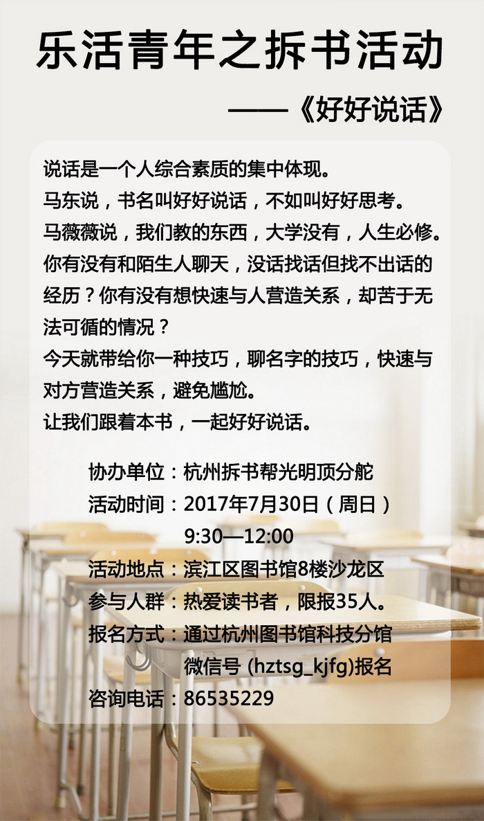 活动时间: 2017年7月30日(周日) 09:30 ~ 12:00