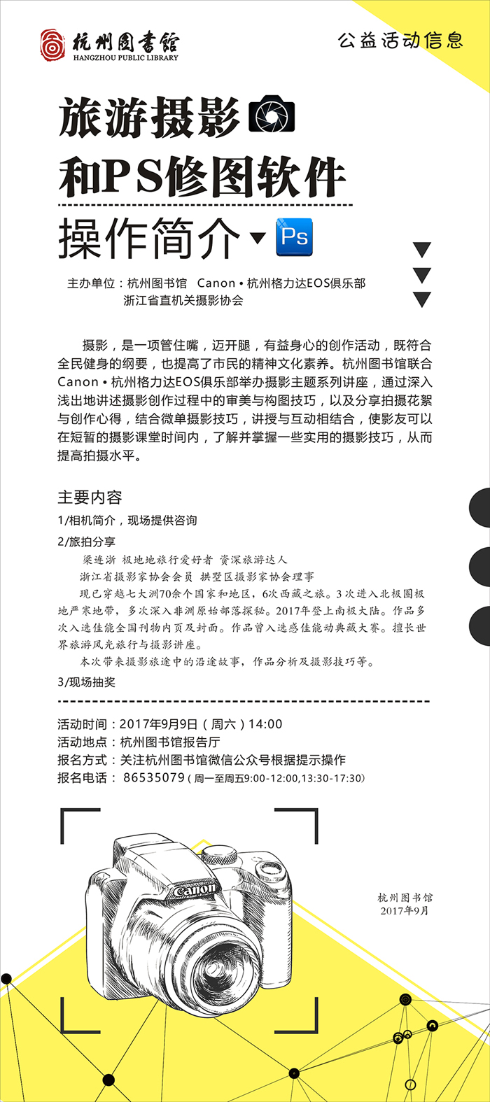 活动时间: 2017年9月9日(周六) 14:00 ~ 15:30