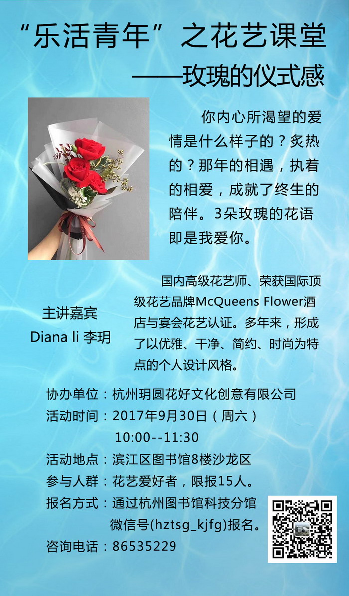 活动时间: 2017年9月30日(周六) 10:00 ~ 11:30