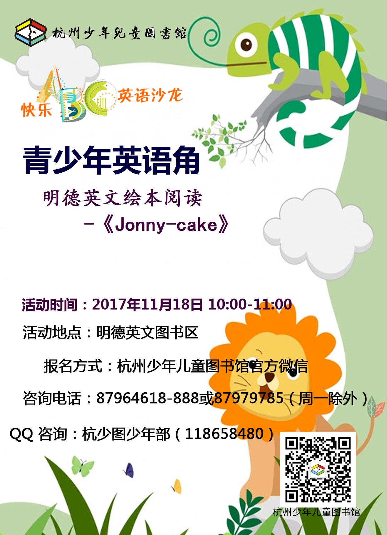 | 2017年11月18日10:00-11:00青少年英语角-明德英文绘本阅读-《Jonny-cake》