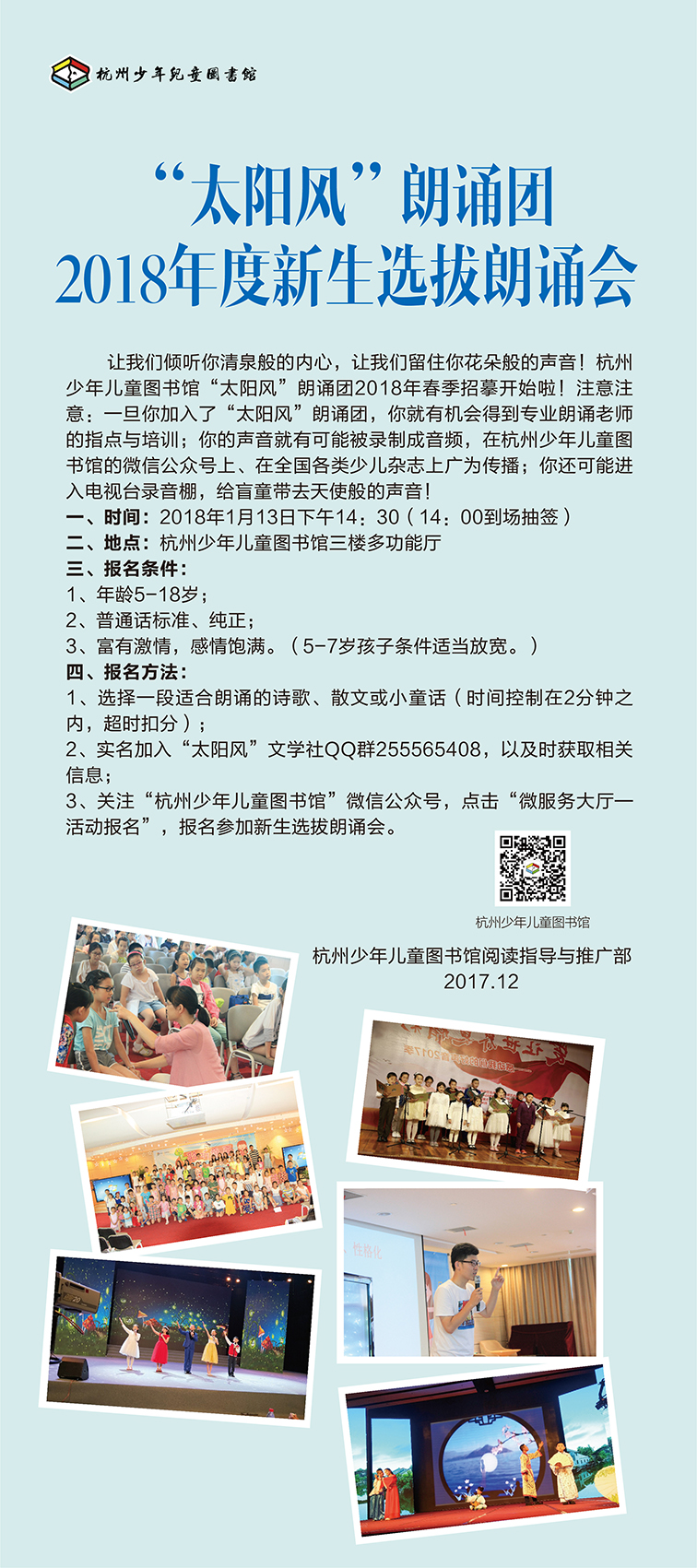 杭州少年儿童图书馆“太阳风”朗诵团2018年度新生选拔朗诵会