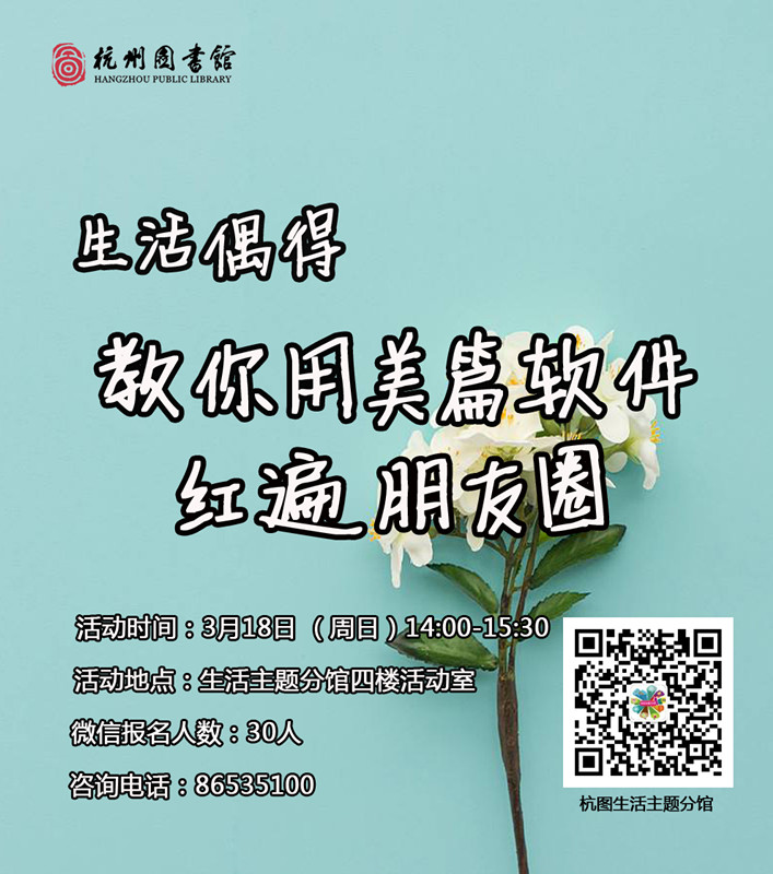 活动时间: 2018年3月18日(周日) 14:00 ~ 15:30