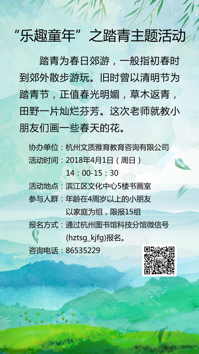 活动时间: 2018年4月1日(周日) 14:00 ~ 15:30
