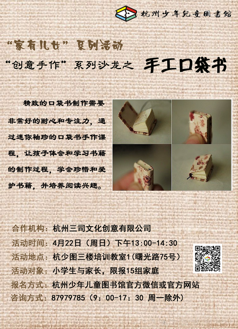 | "家有儿女”家庭教育活动系列之“创意手作”沙龙系列——手工口袋书