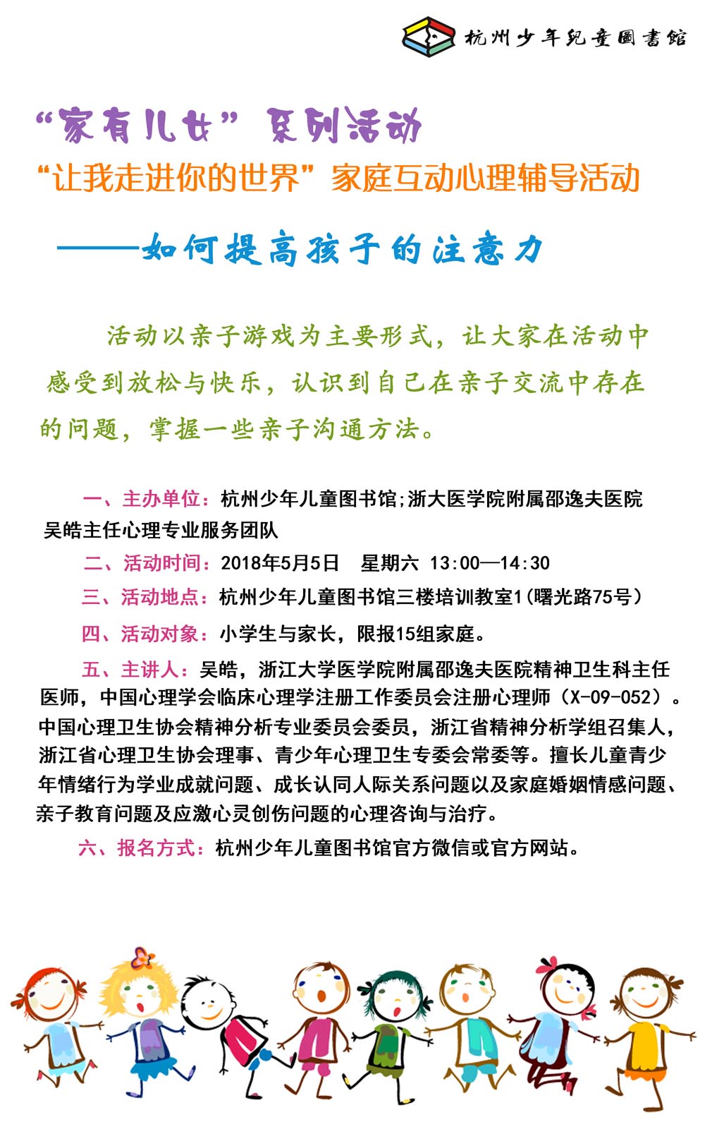 | “家有儿女”之“让我走进你的世界”家庭互动心理辅导活动—如何提高孩子的注意力