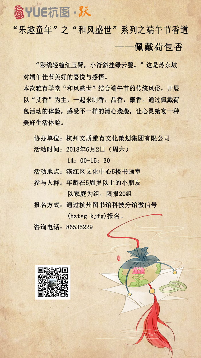 【YUE杭图•跃】乐趣童年之“和风盛世”系列之端午节香道——佩戴荷包香