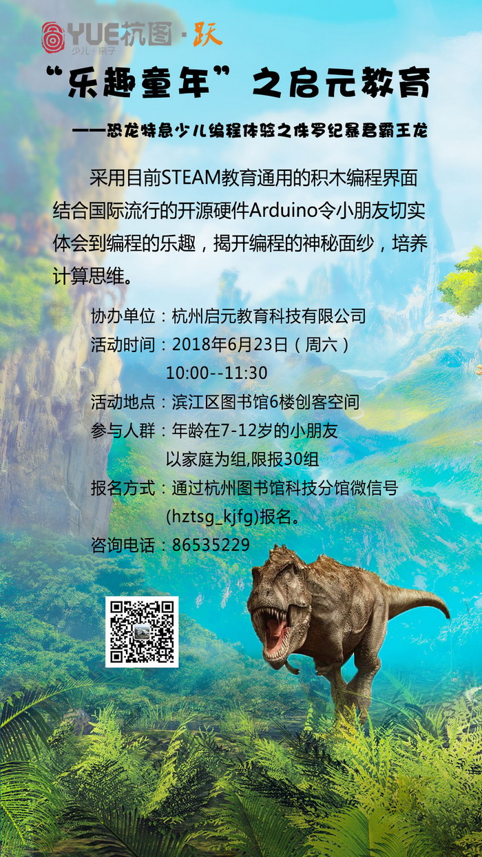 | 【YUE杭图•跃】“乐趣童年”之启元教育:恐龙特急少儿编程体验之侏罗纪暴君霸王龙