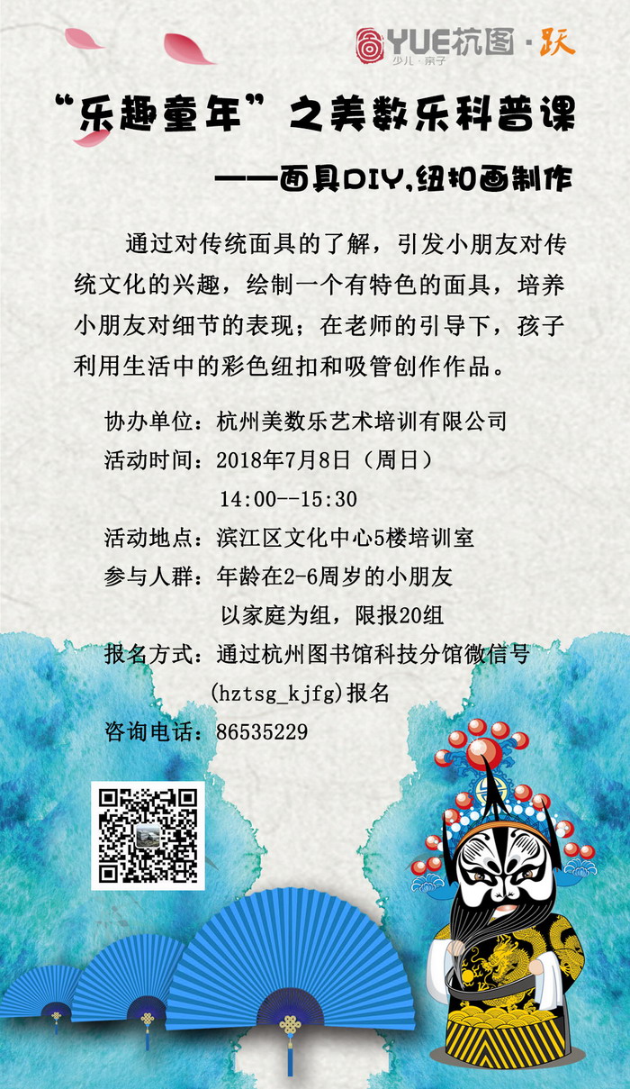 【YUE杭图•跃】“乐趣童年”之美数乐科普课:面具DIY,纽扣画制作