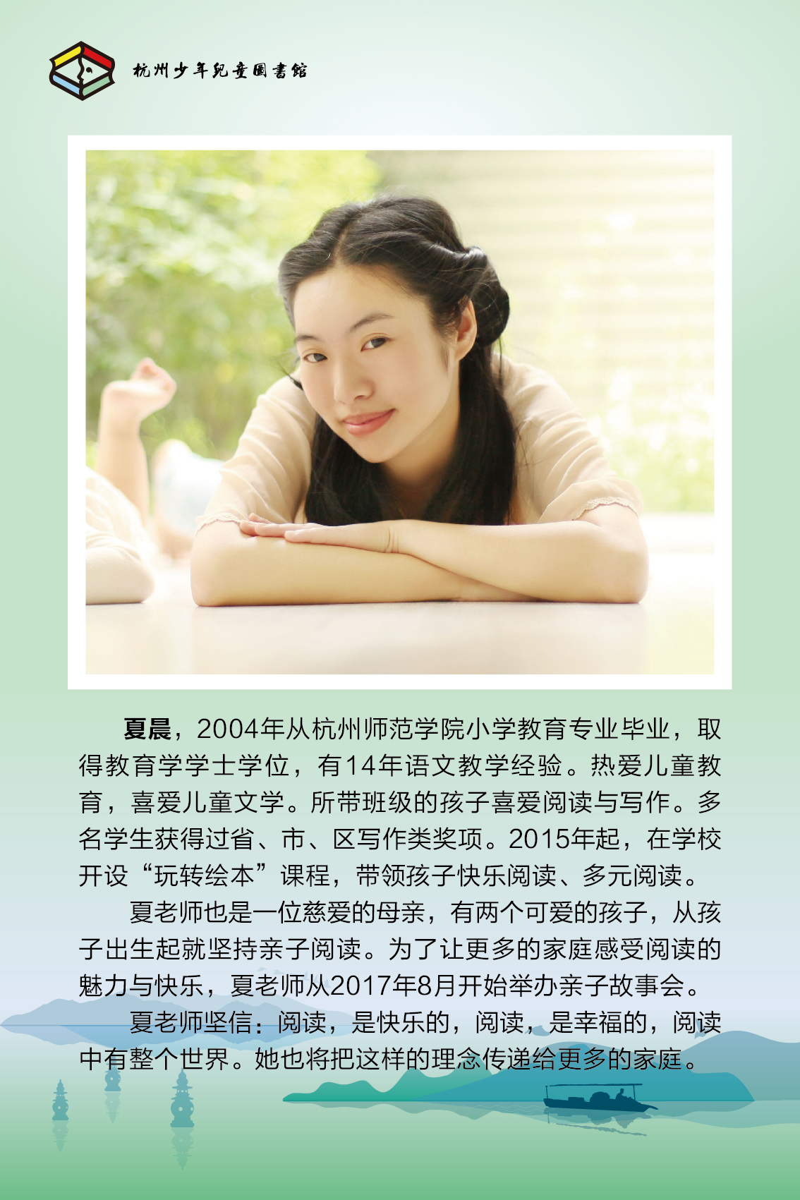 夏老师坚信:阅读,是快乐的,阅读,是幸福的,阅读中有整个世界。她也将把这样的理念传递给更多的家庭。