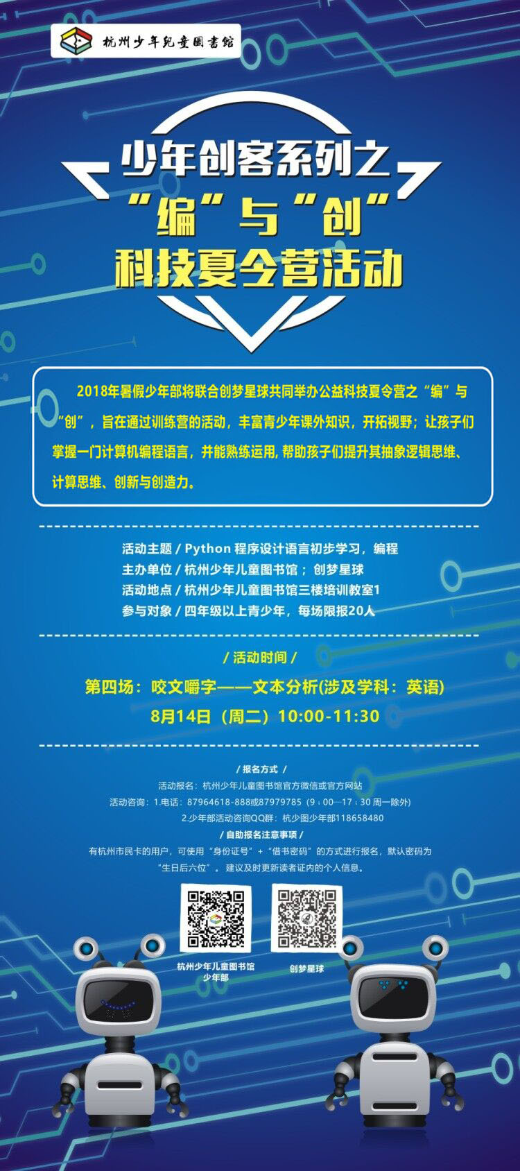 | 活动时间: 2018年8月14日(周二) 10:00 ~ 11:30 |