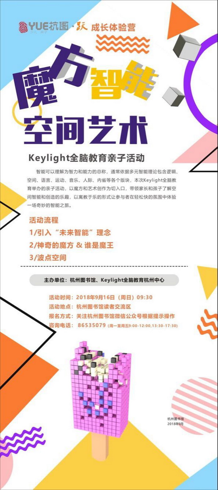 【YUE杭图•跃】成长体验营:魔方智能空间艺术keylight全脑教育亲子活动