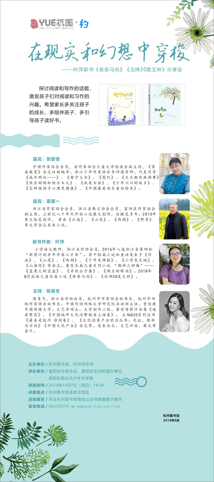 | 【YUE杭图•约】在现实和幻想中穿梭——叶萍新书《亲亲马尚》《北纬30度王梓》分享会
