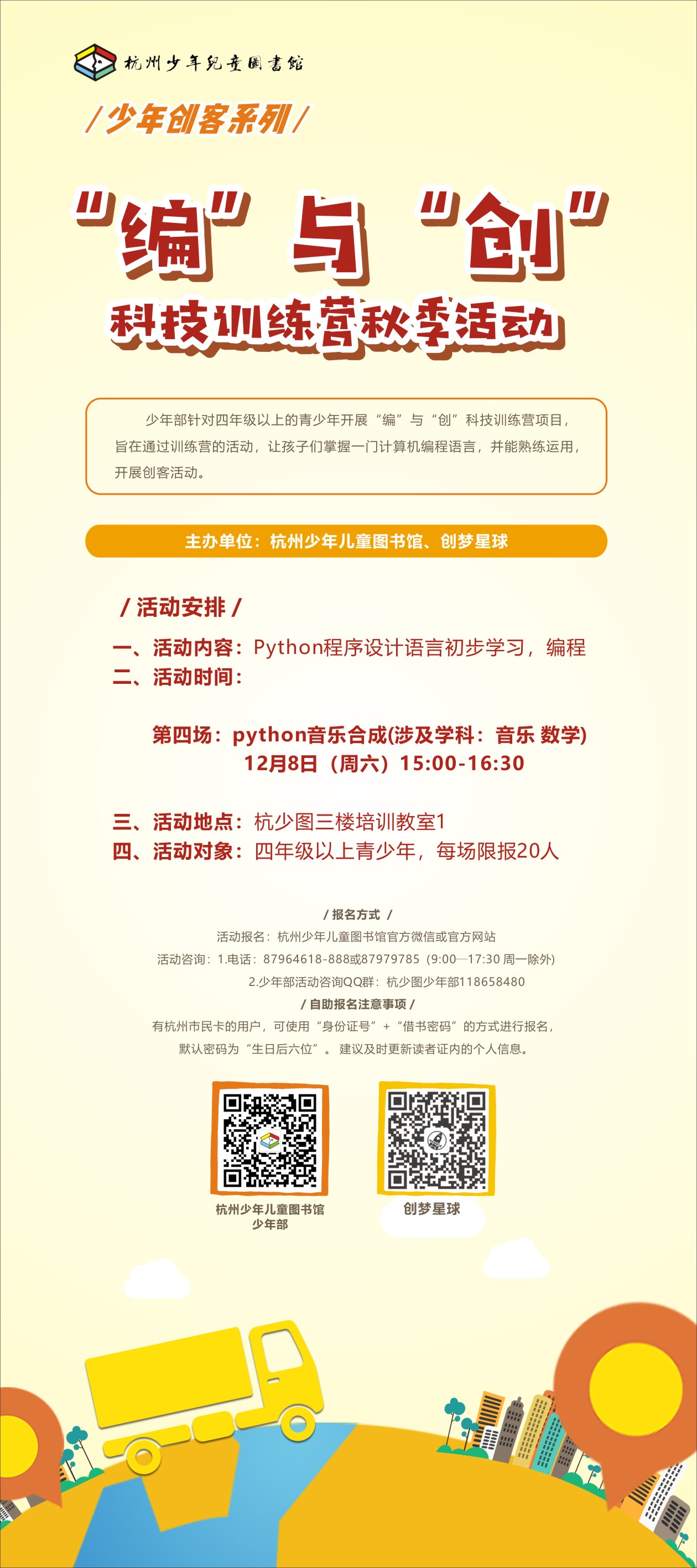 | 少年创客系列活动——“编”与“创”科技训练营第四期——Python音乐合成(涉及学科:数学、音乐)