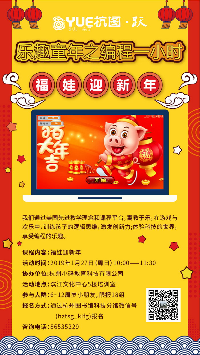 【YUE杭图•跃】乐趣童年:编程一小时——福娃迎新年