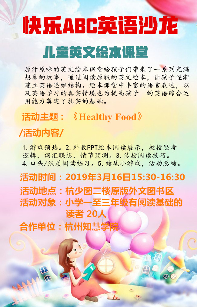| 快乐ABC英语沙龙-儿童英文绘本课堂《Healthy Food》