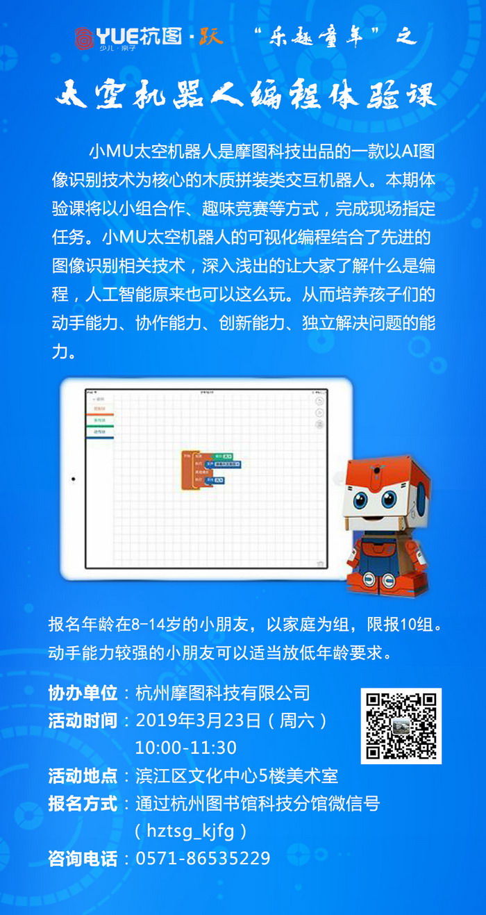 【YUE杭图•跃】乐趣童年:太空机器人编程体验课