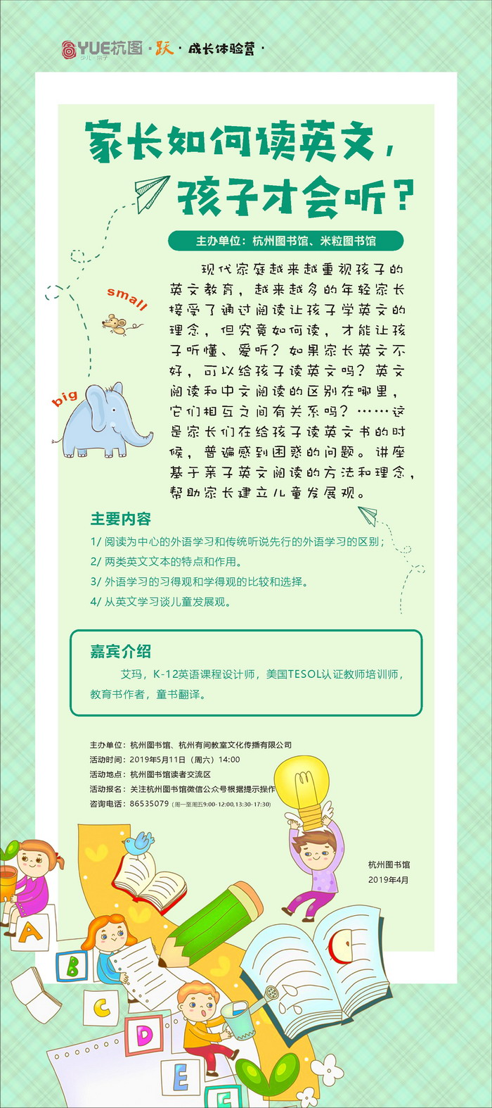 【YUE杭图•约 】成长体验营:家长如何读英文,孩子才会听?