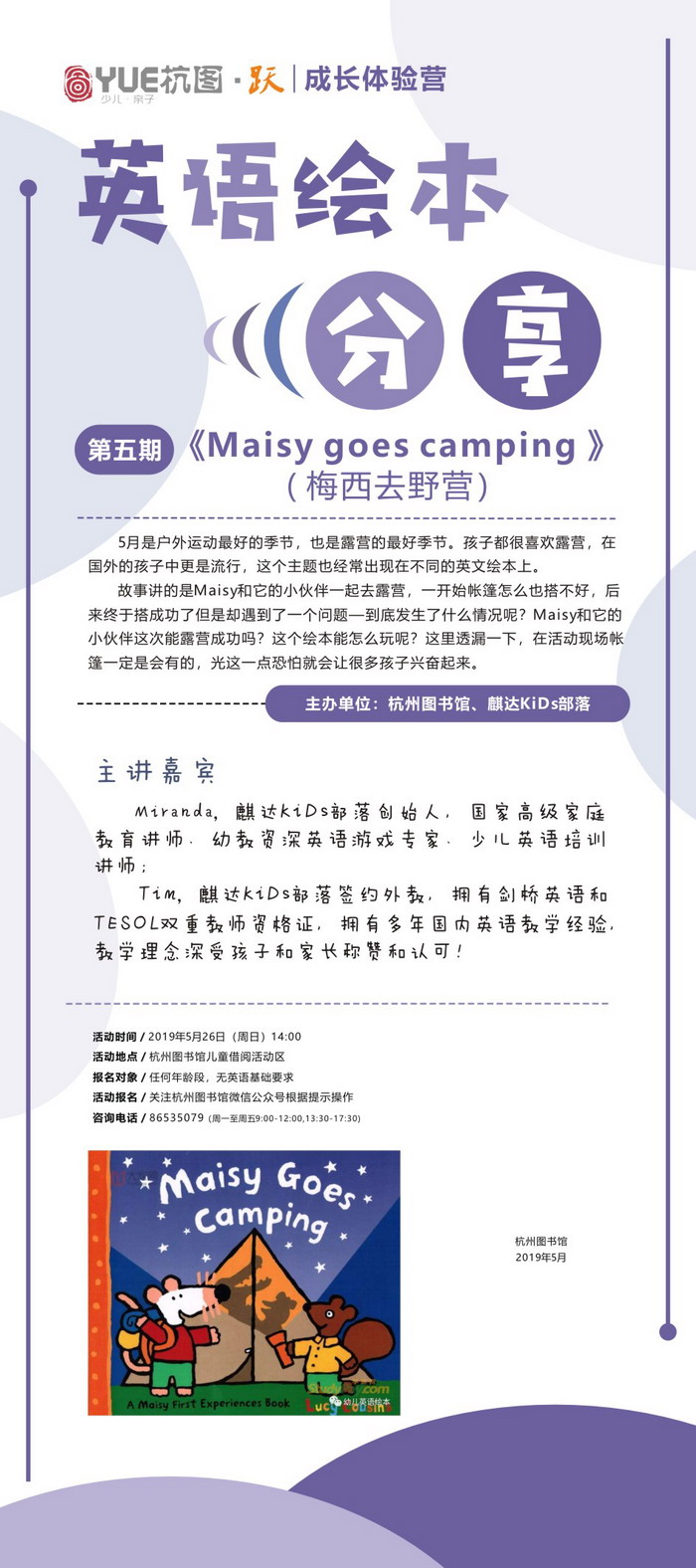活动时间: 2019年5月26日(周日) 14:00 ~ 15:30