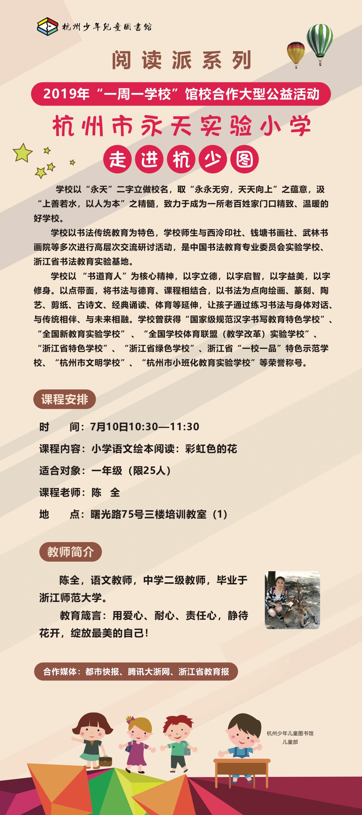 | 2019年“一周一学校”馆校合作大型公益活动之永天实验小学走进杭少图——小学语文绘本阅读:彩虹色的花