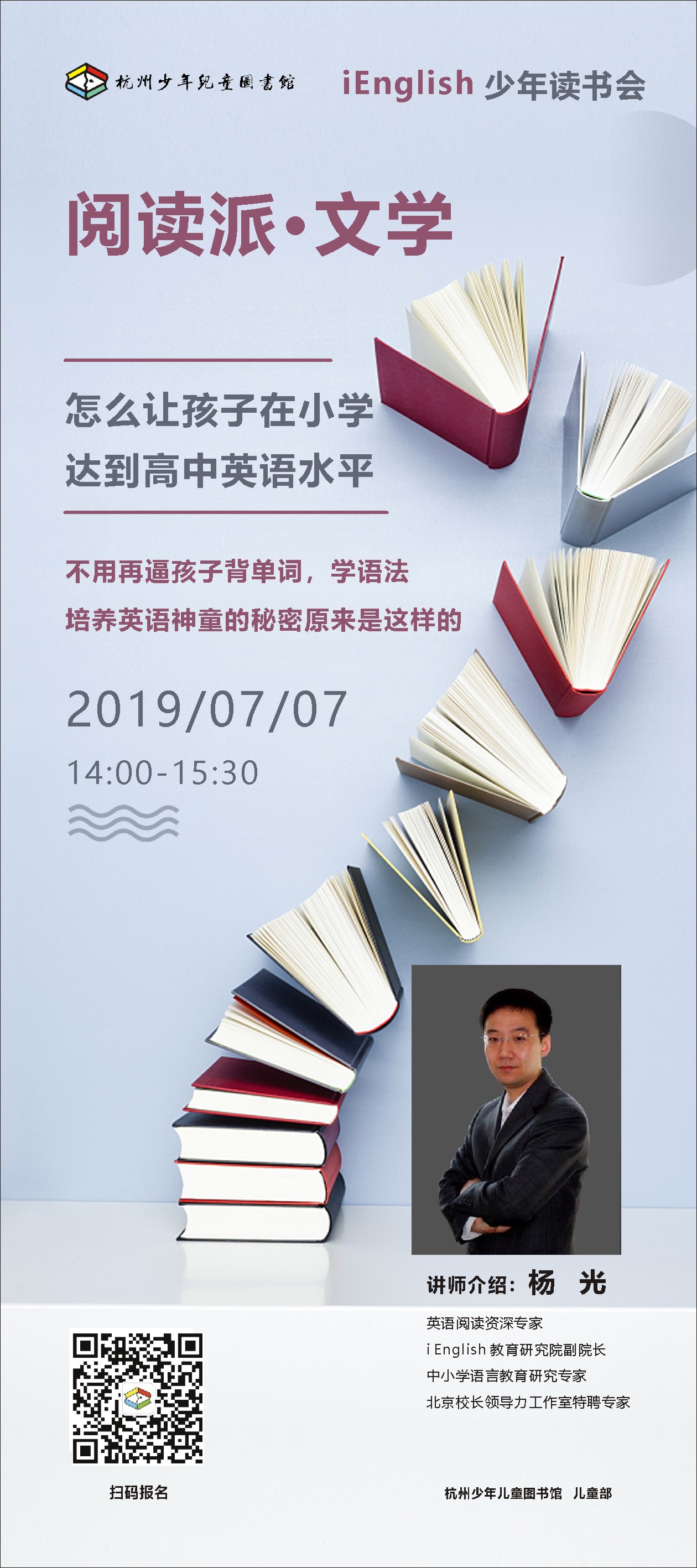 | 活动时间: 2019年7月7日(周日) 14:00 ~ 15:30 |