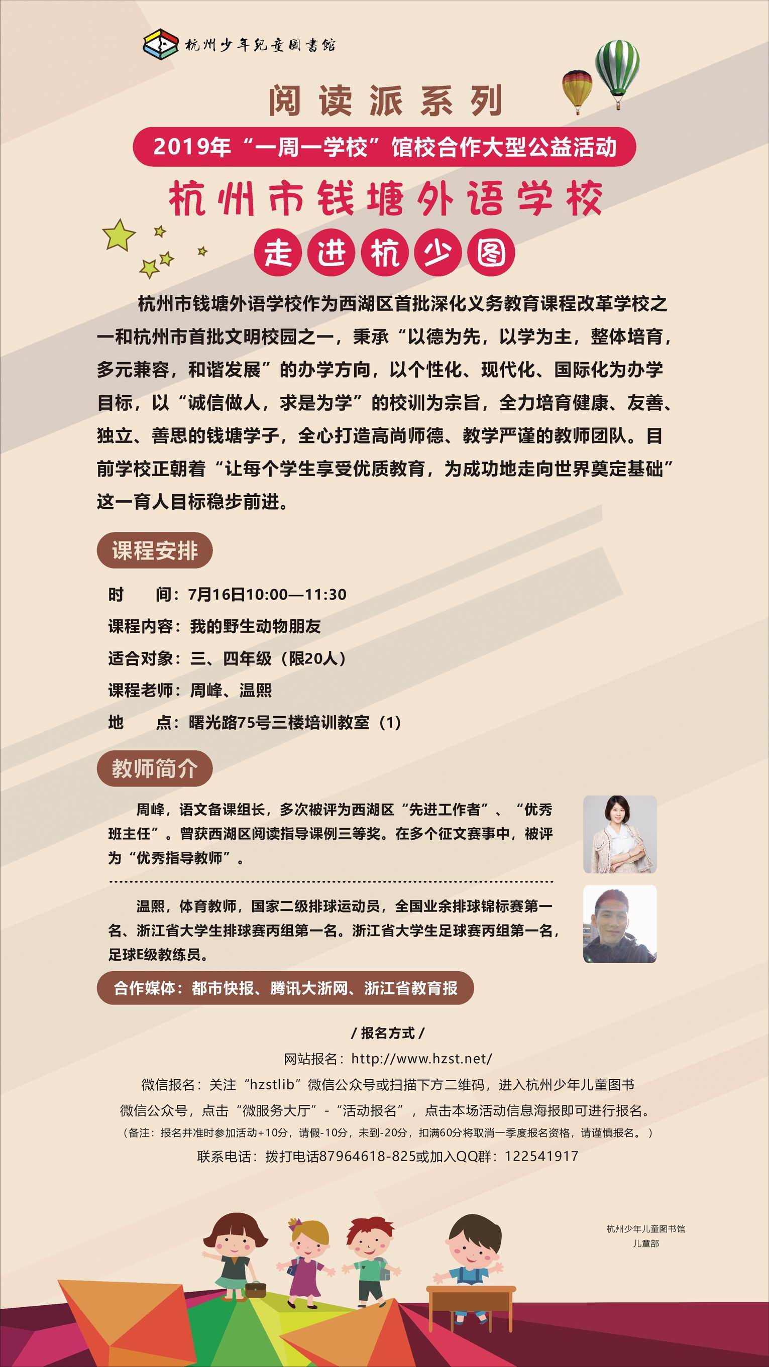 | 2019年“一周一学校”馆校合作大型公益活动之钱塘外语实验走进杭少图—我的野生动物朋友