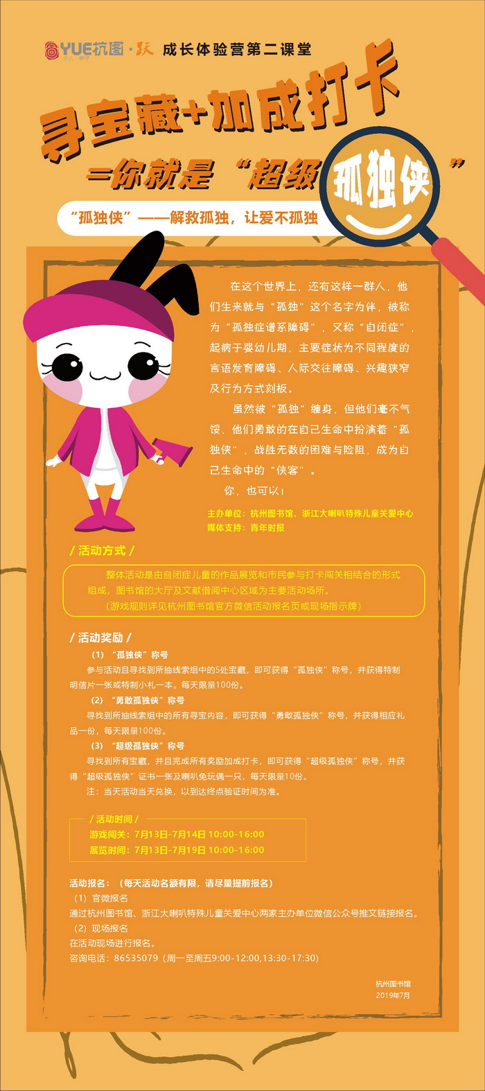 【YUE杭图·跃】成长体验营:陪我做“孤独侠”好不好?(7月13日)