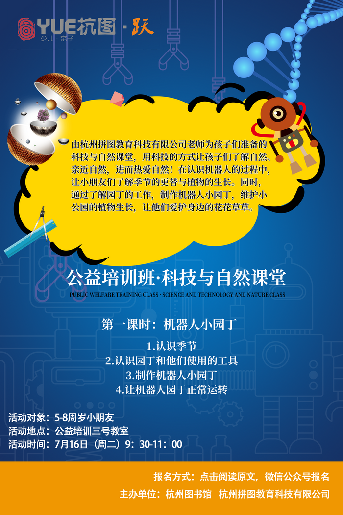 | 【YUE杭图•跃】公益培训班·科技与自然学堂:机器人小园丁