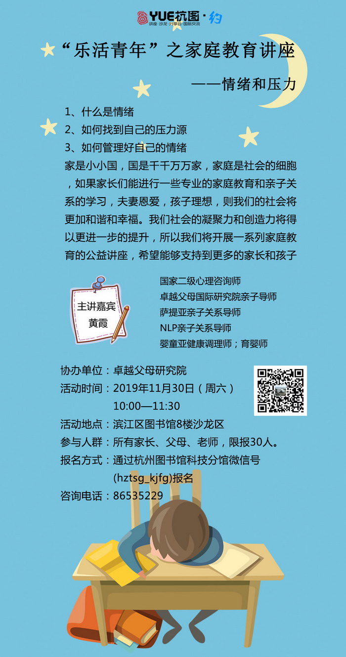 【YUE杭图•约】乐活青年:家庭教育讲座——情绪和压力