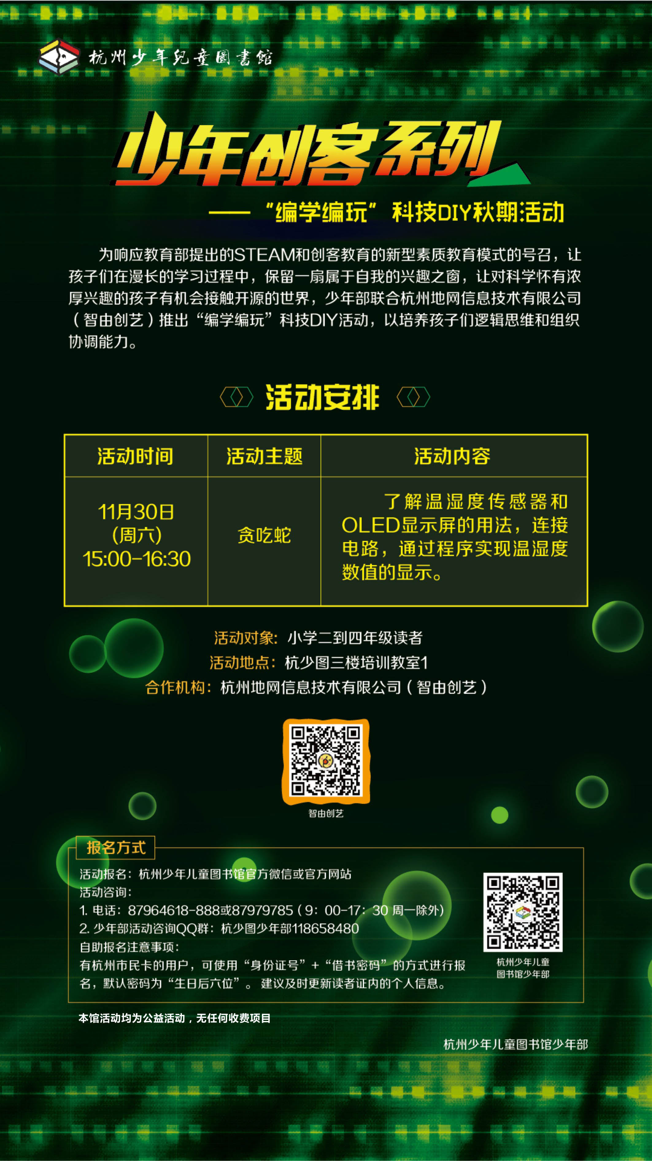 | 少年创客系列之“编学编玩”科技DIY秋季活动——贪吃蛇