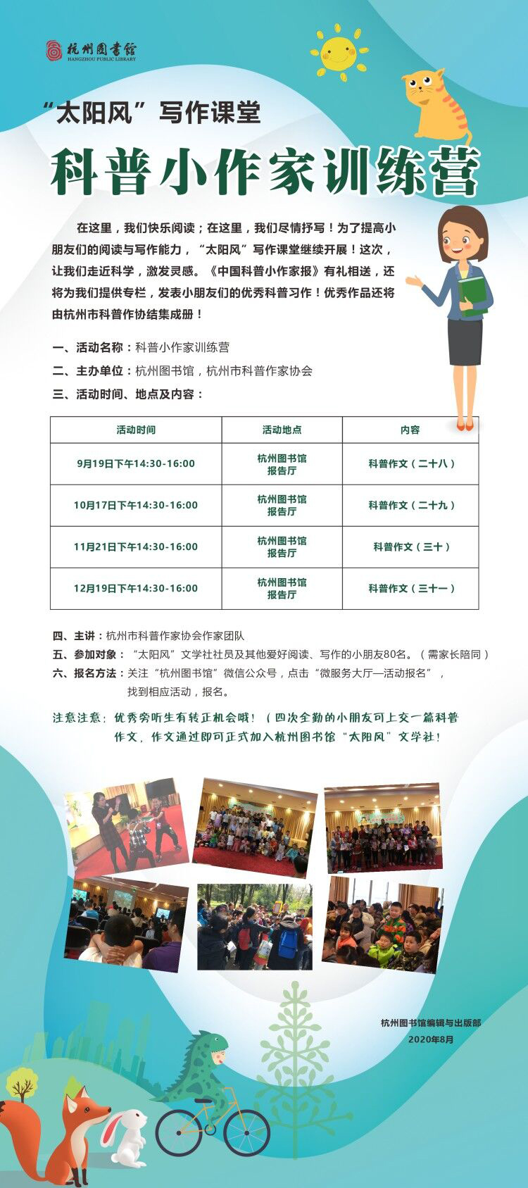 注意注意:优秀旁听生有转正机会哦!(四次全勤的小朋友可上交一篇科普作文,作文通过即可正式加入杭州图书馆“太阳风”文学社!