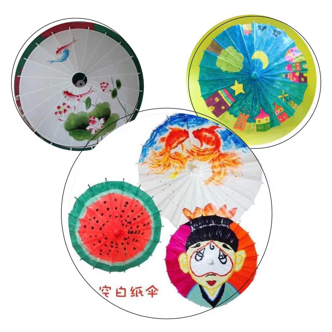 这一次,让我们拿起身边的作画材料(马克笔和水彩笔画出来的效果就很好哦),动动指尖在伞面上绘画出属于你的独特风采吧!