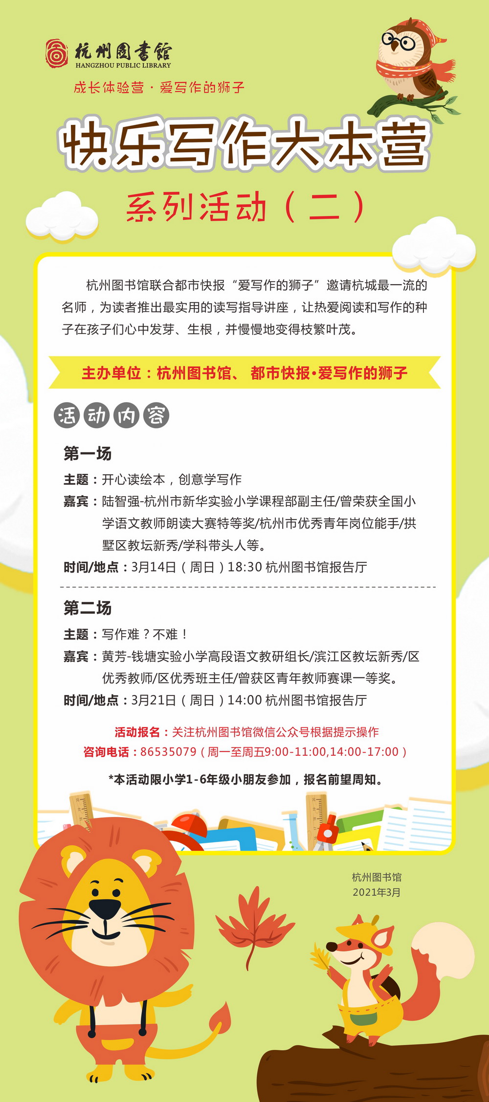 成长体验营•爱写作的狮子:快乐写作大本营系列活动(二)(第二场)写作难?不难!