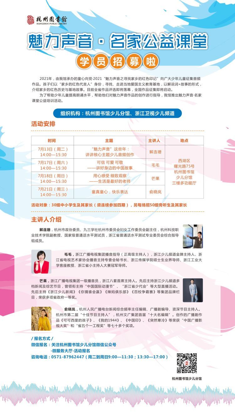 | 魅力声音·名家公益课堂(旁听声报名通道,每期单独报名,7.18)