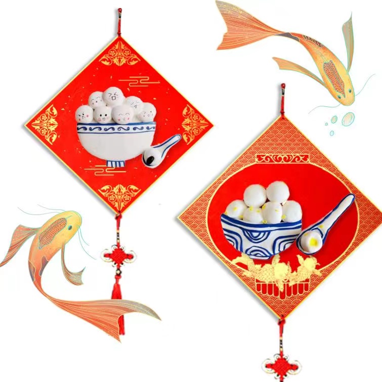 艺术技法:利用搓圆的形式,做出轻土元宵,完成一个挂件装饰。