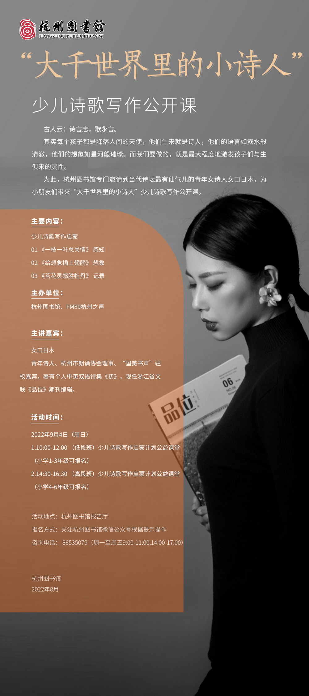 “大千世界里的小诗人”少儿诗歌写作公开课(小学1-3年级报名)