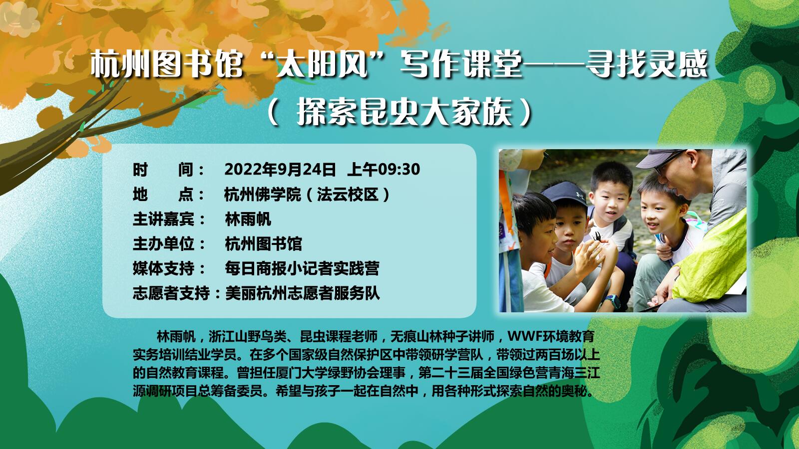 本周六,我们跟随林雨帆老师一起走进山野,成为小小法布尔,探索昆虫大家族的秘密吧!