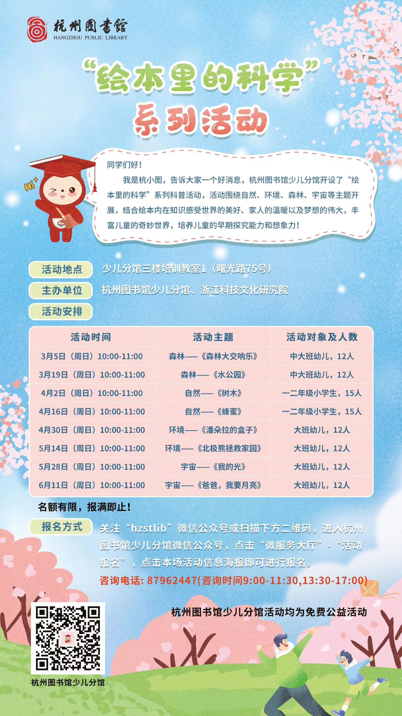杭州图书馆少儿分馆三楼培训教室1(曙光路75号) |