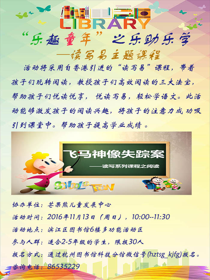 活动地点:杭州图书馆博文专修学校4号教室(市民中心)