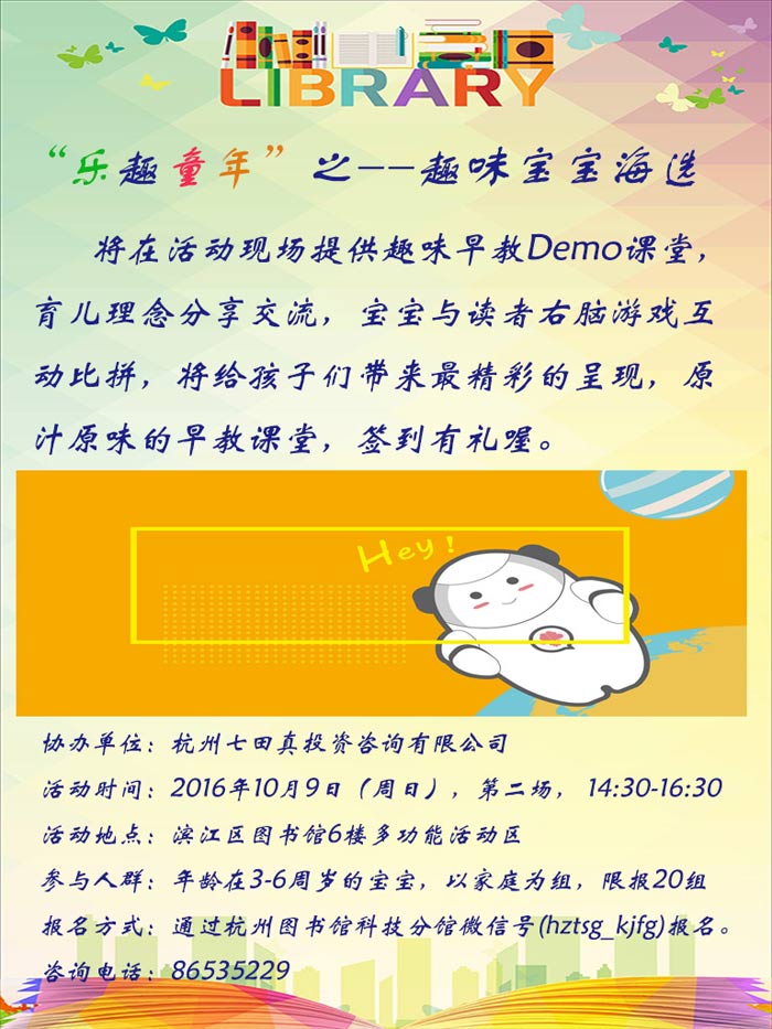 活动地点:滨江区图书馆6楼多功能活动区
