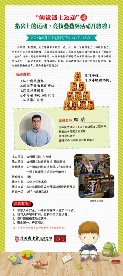 活动地点:杭州图书馆运动分馆(文一西路与荆长大道交汇处 西溪八方城6幢112号)