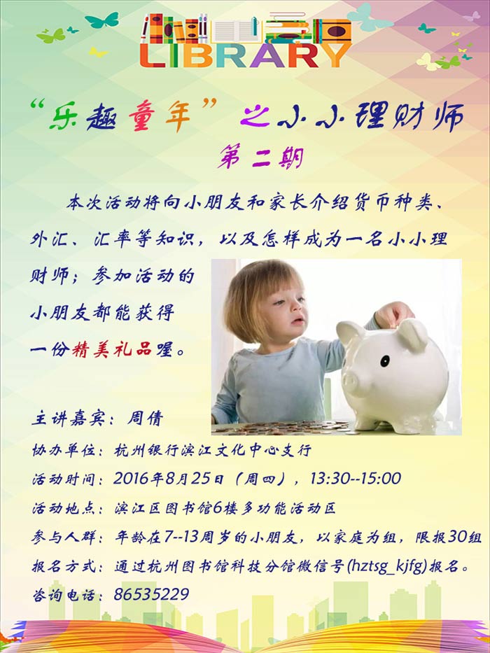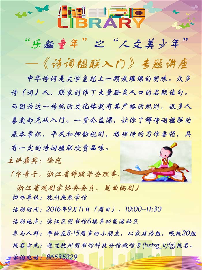 活动地点:滨江区图书馆6楼多功能活动区
