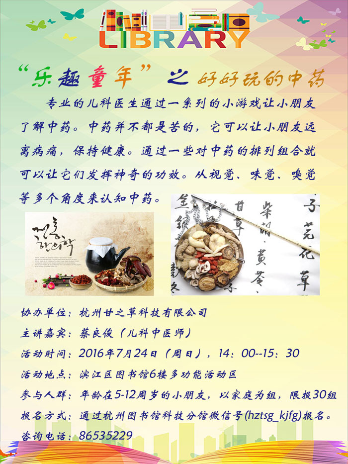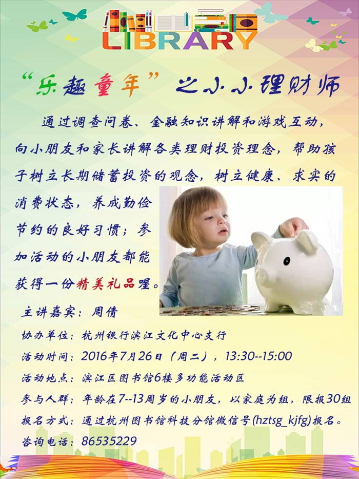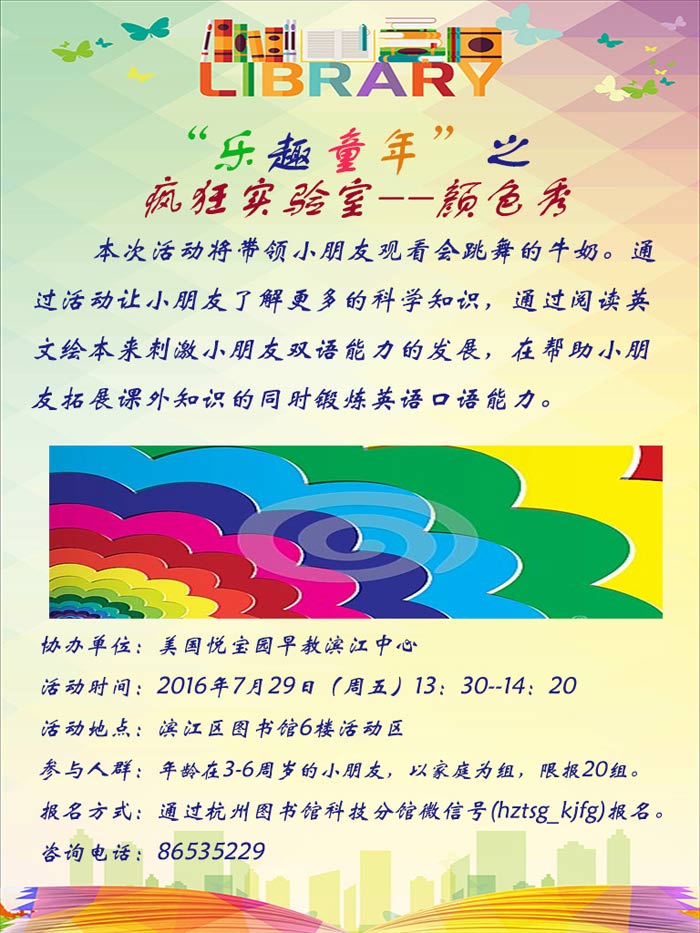 活动地点:滨江区图书馆6楼多功能活动区