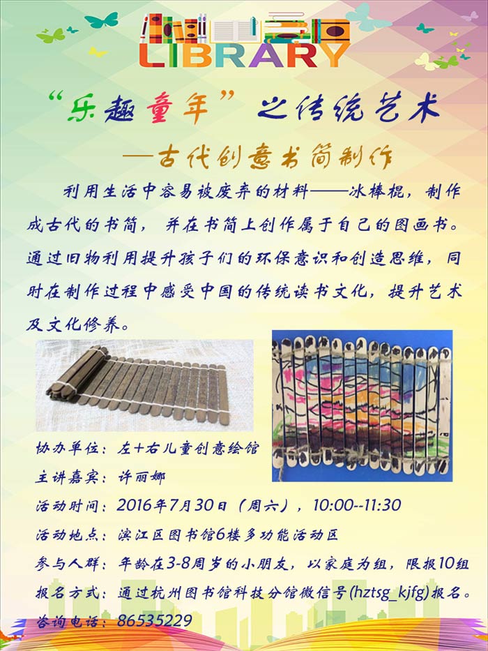 活动地点:杭州市滨江区图书馆6楼活动区