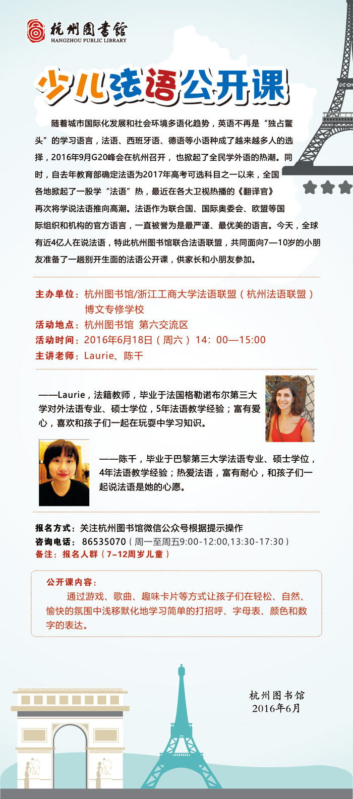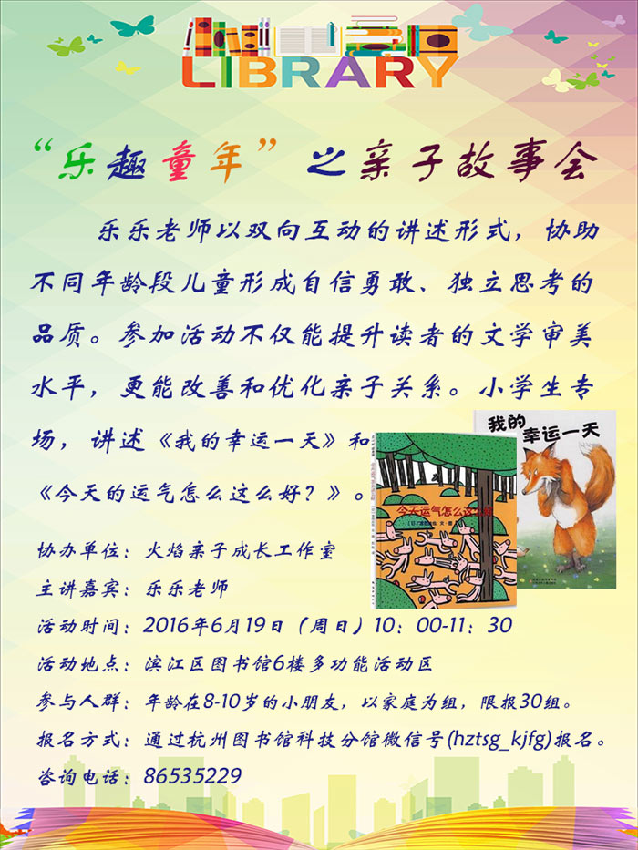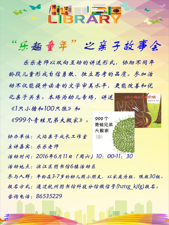 活动地点:杭州市滨江区图书馆6楼活动区