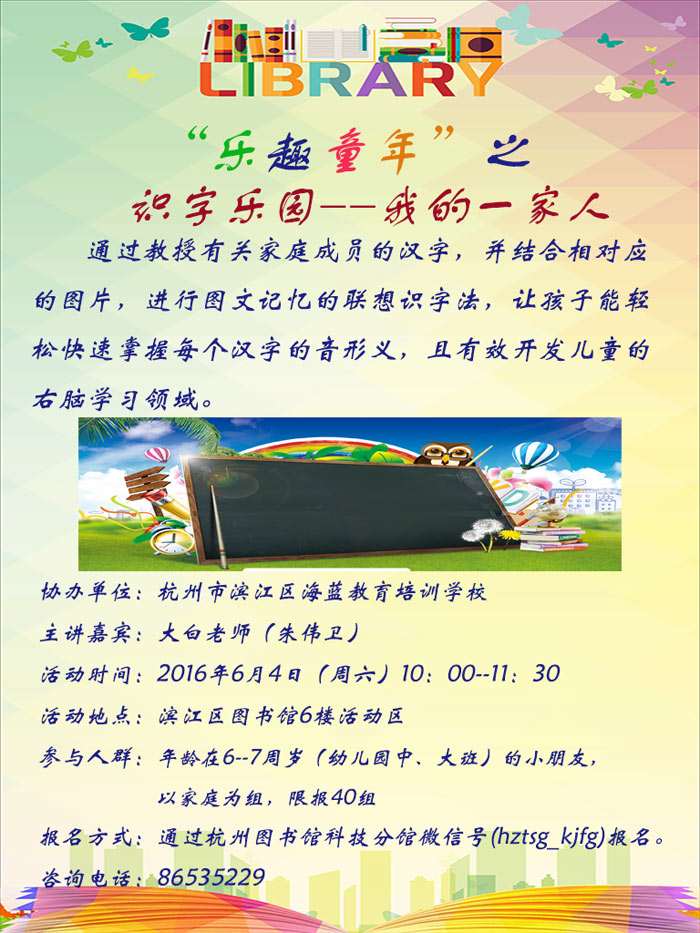 活动地点:杭州市滨江区图书馆6楼活动区