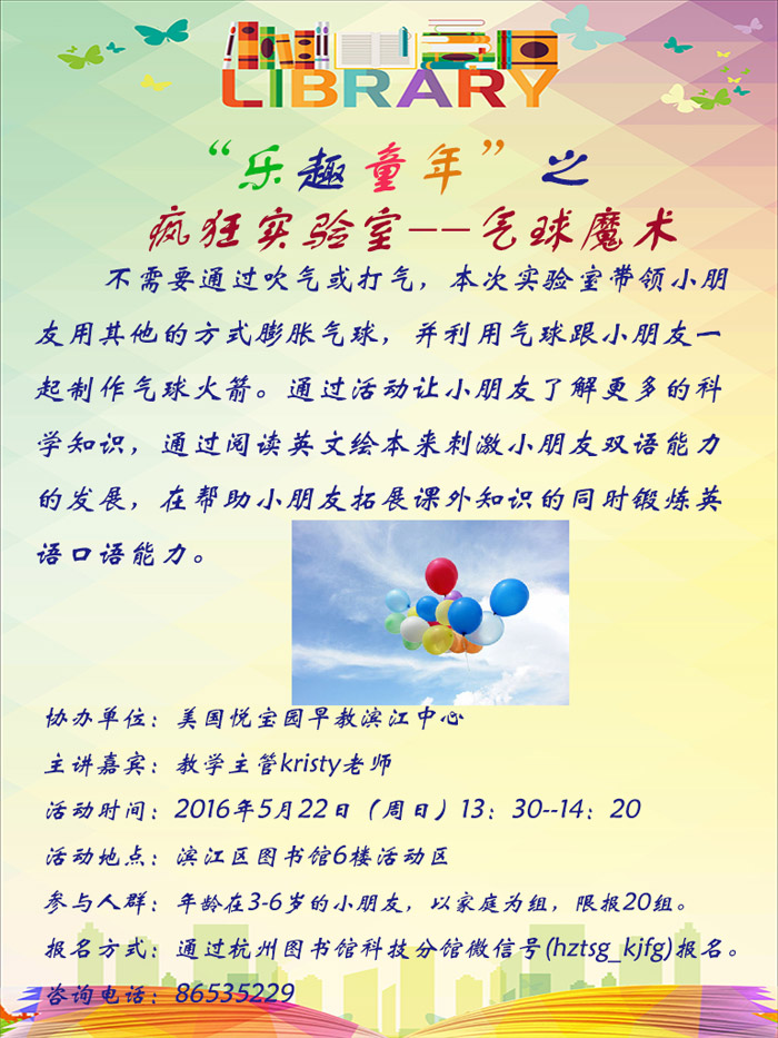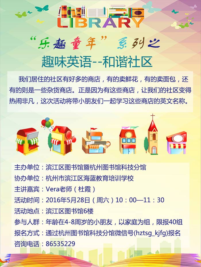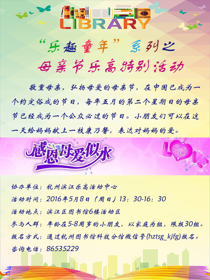 活动地点:杭州市滨江区图书馆6楼活动区