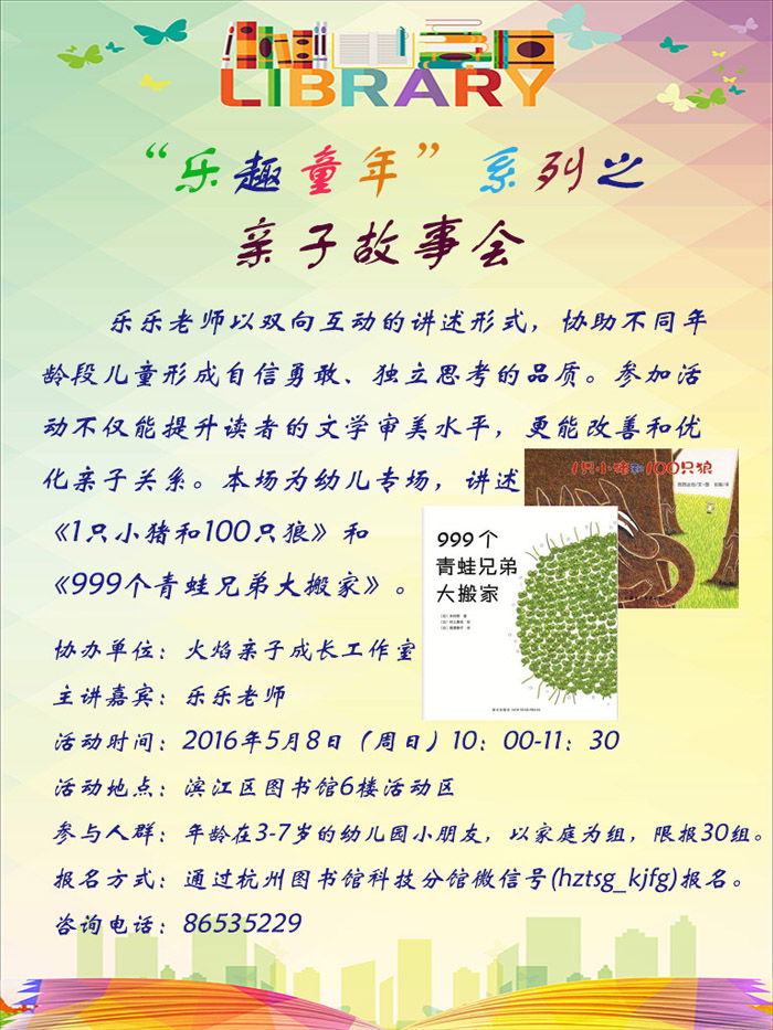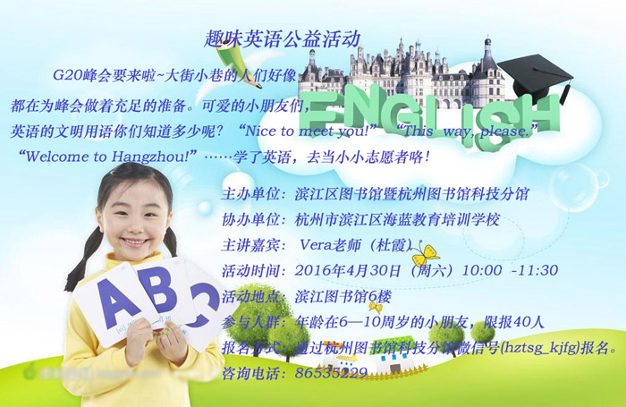 活动地点:杭州市滨江区图书馆6楼