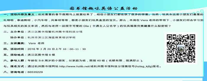 活动地点:杭州市滨江区图书馆6楼