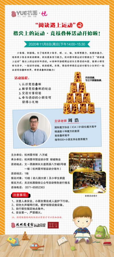 活动地点:杭州图书馆运动分馆(文一西路与荆长大道交汇处 西溪八方城6幢112号)