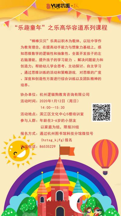 活动地点:杭州图书馆儿童借阅区(市民中心)